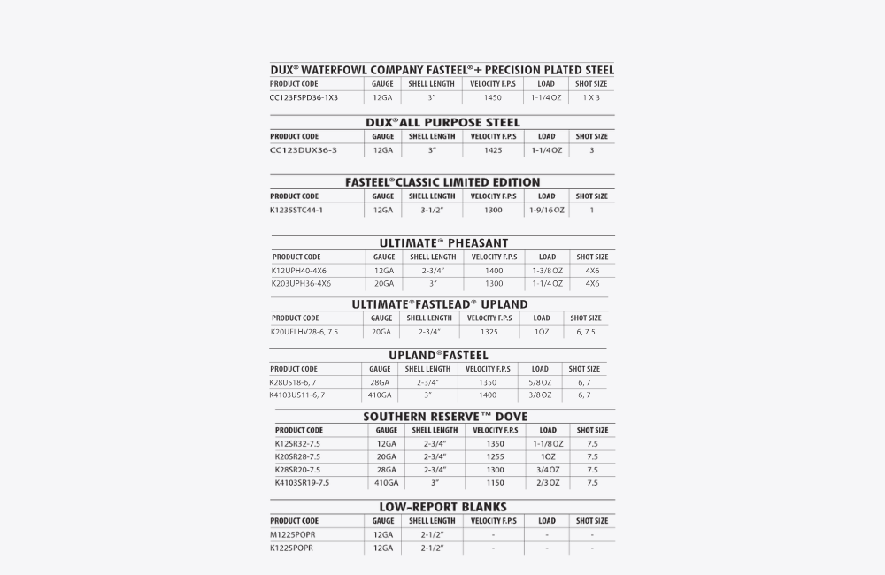 Fasteel® Classic returns with proven pattern consistency and hard-hitting performance, while the latest Kent® DUX™ delivers reliable results shot after shot.